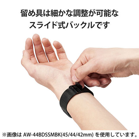 ■留め具は、手首にフィットした細かな調整ができるスライド式バックルです