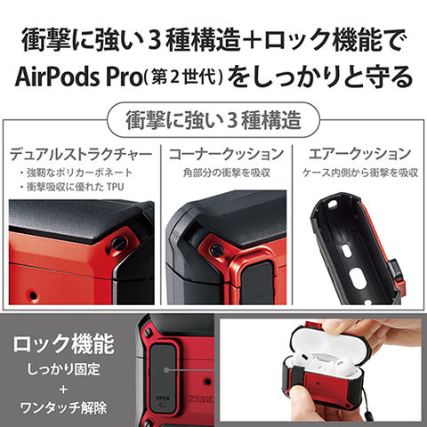 エレコム(ELECOM) AVA-AP4ZEROLRD レッド AirPods Pro 第2世代 用 ZEROSHOCK Lockケース ロック機能付き