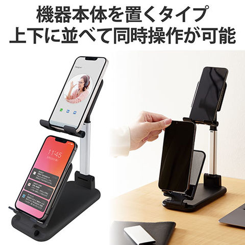 エレコム(ELECOM) TB-DSARM2VBK ブラック スマホ/タブレット対応 2台縦列配置 卓上スタンド 角度/高さ調整可