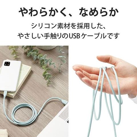 ■シリコン素材を採用した柔らかく、なめらかな手触りのUSBケーブルです。