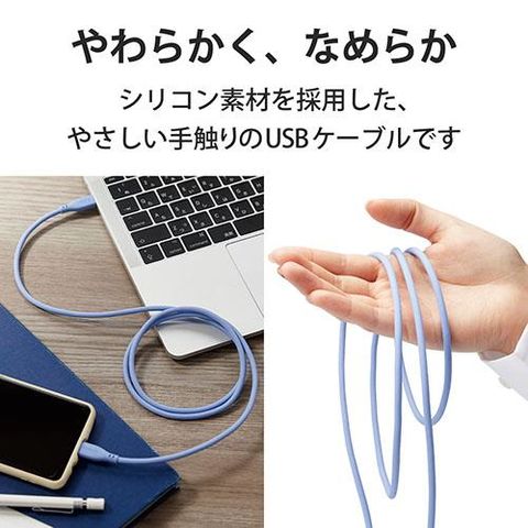■シリコン素材を採用した柔らかく、なめらかな手触りのUSBケーブルです。