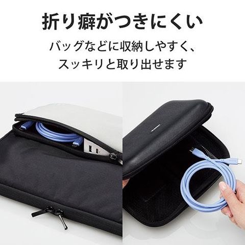 ■シリコン素材を採用した柔らかく、なめらかな手触りのUSBケーブルです。