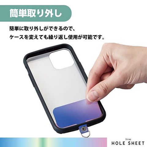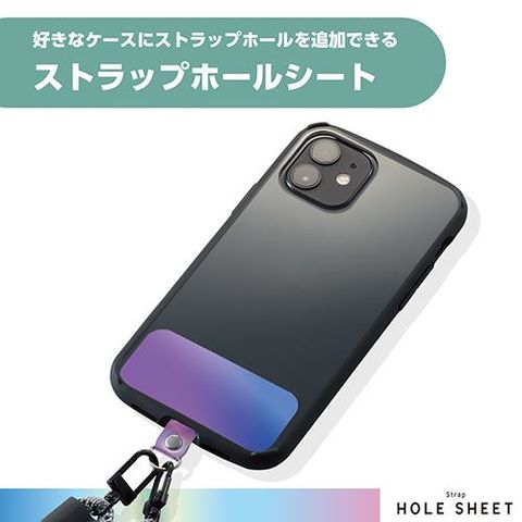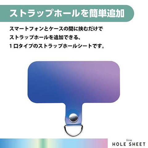 ■スマートフォンとケースの間に挟むだけでストラップホールを追加できる、1口タイプのストラップホールシートです。