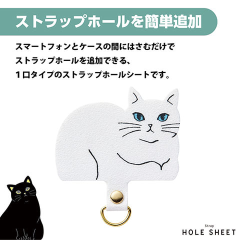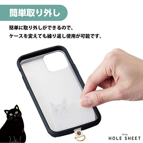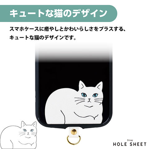 ■スマホケースにキュートなネコのデザインで、癒やしとかわいらしさをプラスできるストラップホールシートです。