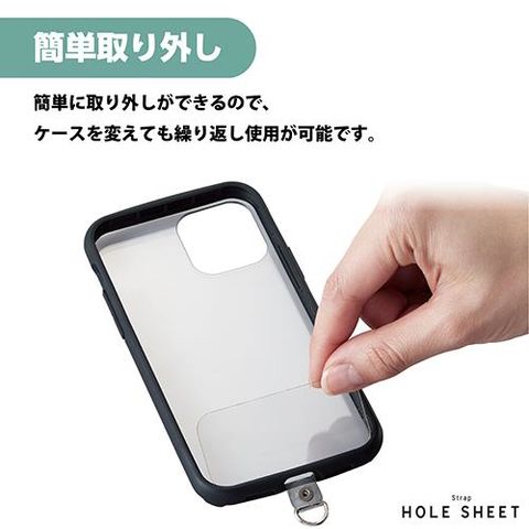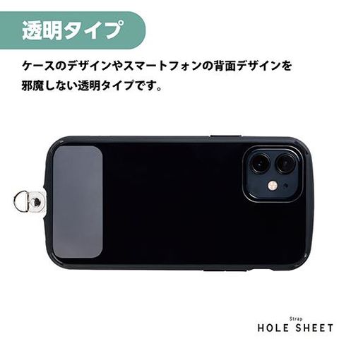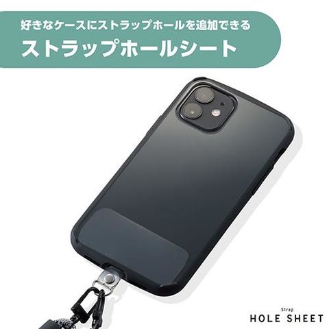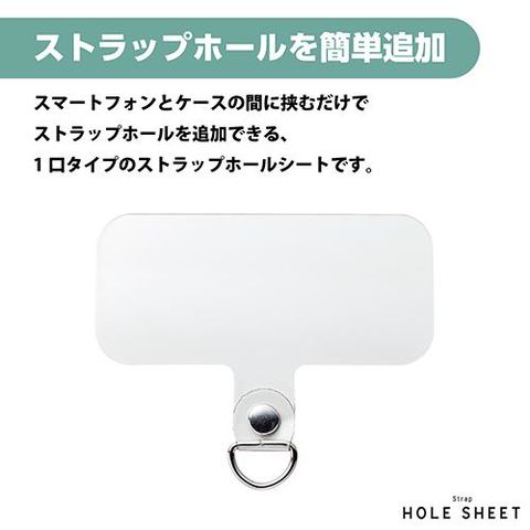 ■スマートフォンとケースの間に挟むだけでストラップホールを追加できる、1口タイプのストラップホールシートです。
