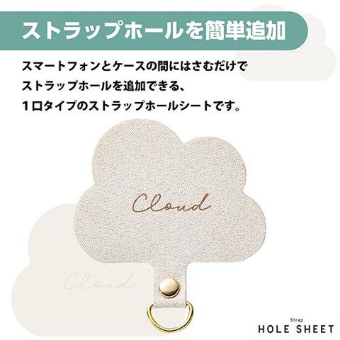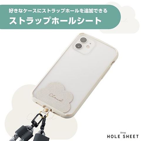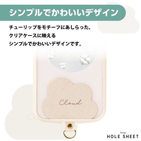 ■雲をモチーフにあしらい、クリアケースに映えるデザインのストラップホールシートです。