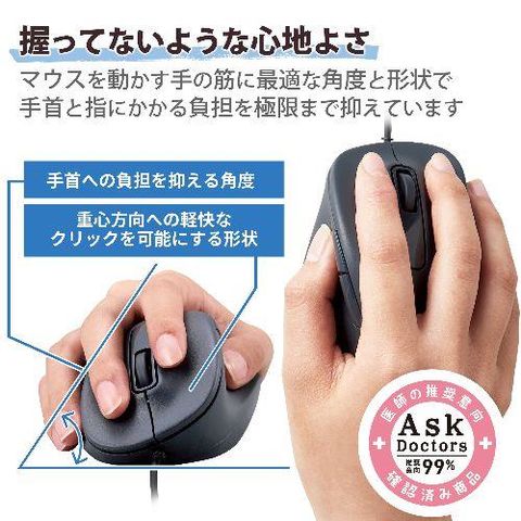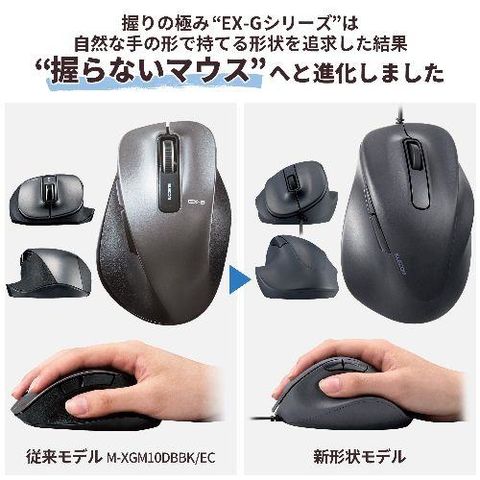 ■医師との共同開発により究極の握り心地を実現した5ボタンマウス“EX-G”。