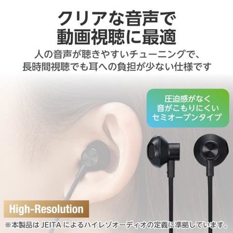 エレコム(ELECOM) EHP-DF10IMBK ブラック タイプCイヤホン マイク付き セミオープン型 インナーイヤータイプ 有線1.2m