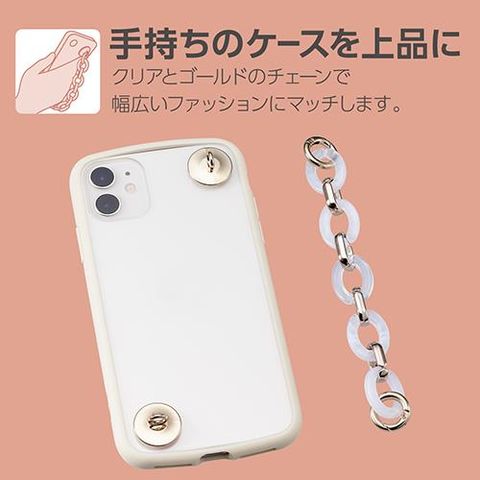 ■クリアとゴールドのチェーンで上品な印象です。カジュアルやエレガントなど幅広いファッションスタイルにマッチ。お手持ちのスマホケースを自分好みにアレンジできます。