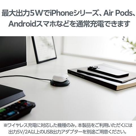 ■スマートフォンを置くだけで5Wで充電ができる、Qi規格対応ワイヤレス充電器です。