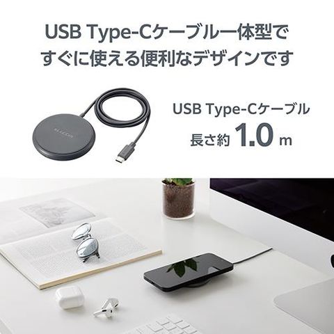 エレコム(ELECOM) W-QA25-DGY ダークグレー ワイヤレス充電器 Qi認証 5W 卓上 滑り止めパッド ケーブル一体