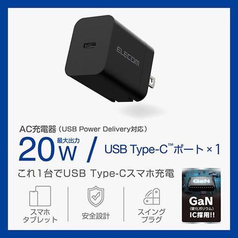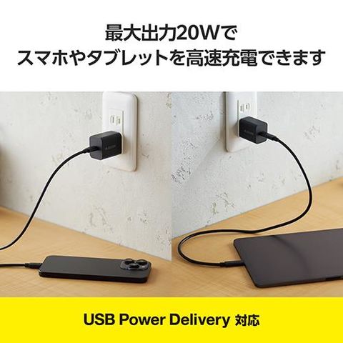 ■USB Power Deliveryに対応したUSB Type-C(TM)ポートを搭載し、対応するスマートフォン、タブレットなどを充電できるUSB AC充電器です。