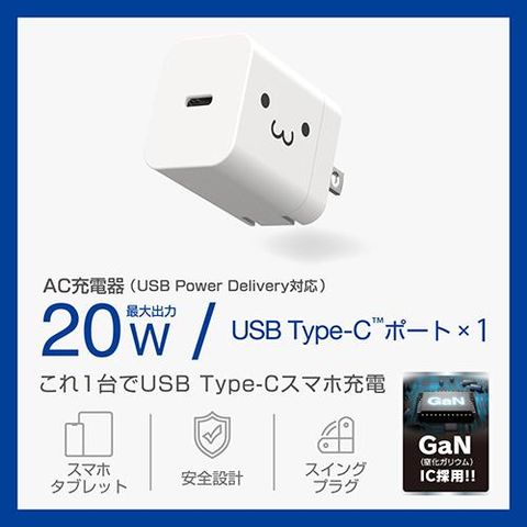■USB Power Deliveryに対応したUSB Type-C(TM)ポートを搭載し、対応するスマートフォン、タブレットなどを充電できるUSB AC充電器です。
