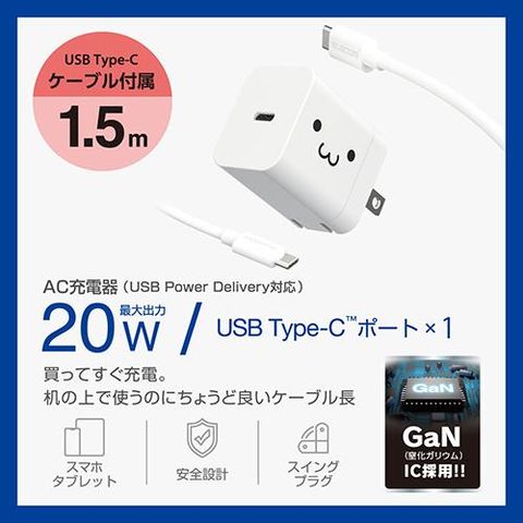 エレコム(ELECOM) MPA-ACCP7120WF しろちゃん USB Power Delivery 20W AC充電器 C-Cケーブル付属 1.5m