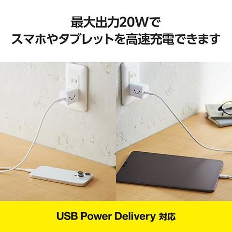 ■USB Power Deliveryに対応したUSB Type-C(TM)ポートを搭載し、対応するスマートフォン、タブレットなどを充電できるUSB AC充電器です。
