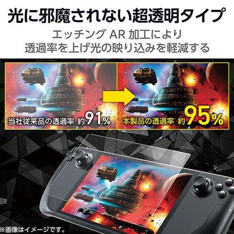 ■エッチングAR加工により透過率をアップ。ゲームプレイの際などに、光の映り込みに邪魔されず快適にプレイすることができる超透明タイプのガラスフィルムです。