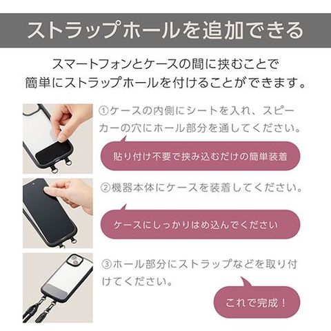 ■お使いのスマホケースにストラップホールがなくても、ケースのスピーカー穴に通すだけで使用できます。