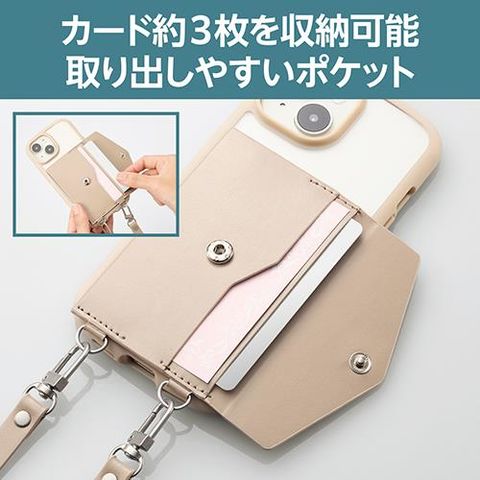 ■肩から掛けられ、バッグやポケットから取り出さなくてもすぐにスマートフォンの操作ができるカードケース付きショルダーストラップです。