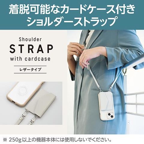 ■肩から掛けられ、バッグやポケットから取り出さなくてもすぐにスマートフォンの操作ができるカードケース付きショルダーストラップです。