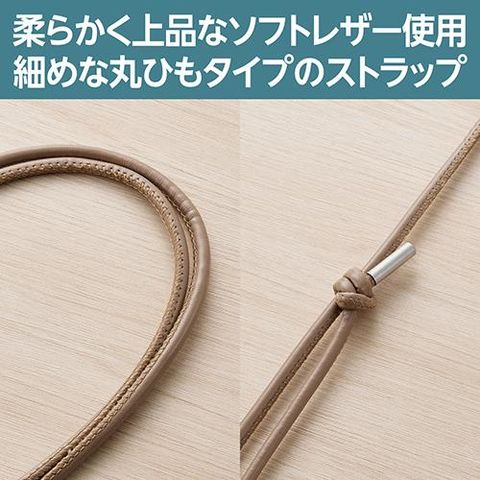 ■ストラップは4mmと細めな丸ひもタイプ。結び目をスライドさせることでお好みの長さに調節できます。