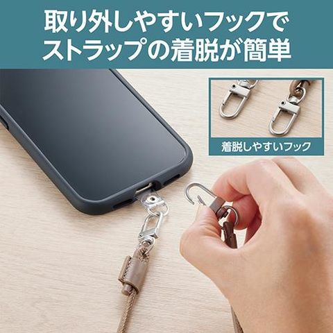 ■肩から掛けられ、バッグやポケットから取り出さなくてもすぐにスマートフォンの操作ができるショルダーストラップです。