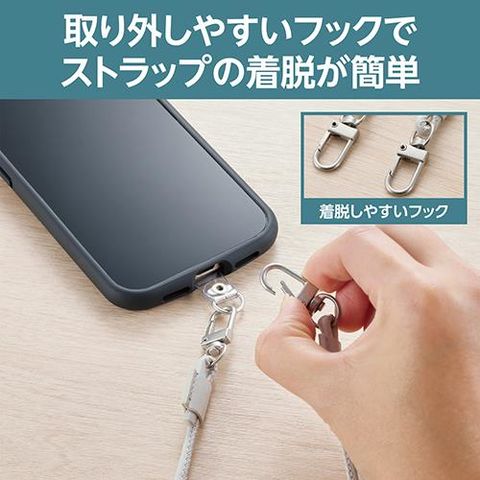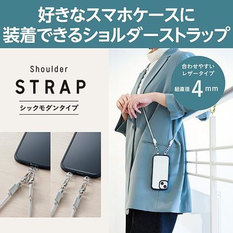 ■肩から掛けられ、バッグやポケットから取り出さなくてもすぐにスマートフォンの操作ができるショルダーストラップです。