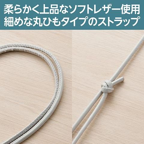 ■ストラップは4mmと細めな丸ひもタイプ。結び目をスライドさせることでお好みの長さに調節できます。