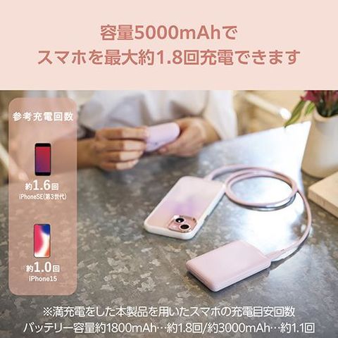 ■小さくて軽く、持ち運びにちょうどいい。15W出力、容量5000mAhのコンパクトなモバイルバッテリーです。