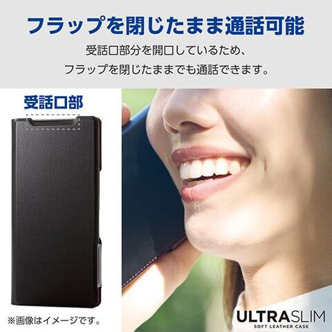 ■端末の薄さや軽さを損ねない、薄型・超軽量なウルトラスリムタイプのソフトレザーケース(手帳型)です。