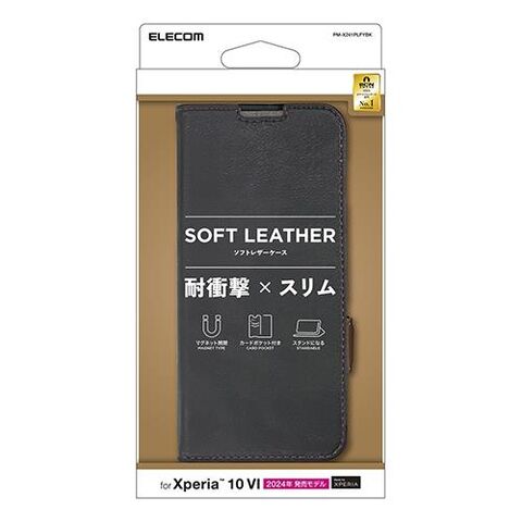 エレコム(ELECOM) PM-X241PLFYBK ブラック Xperia 10 VI SO-52E ケース レザー 手帳型 マグネット