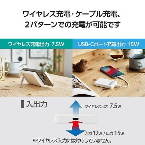 出力:USB Type-Cポート:15W、ワイヤレス充電:7.5W