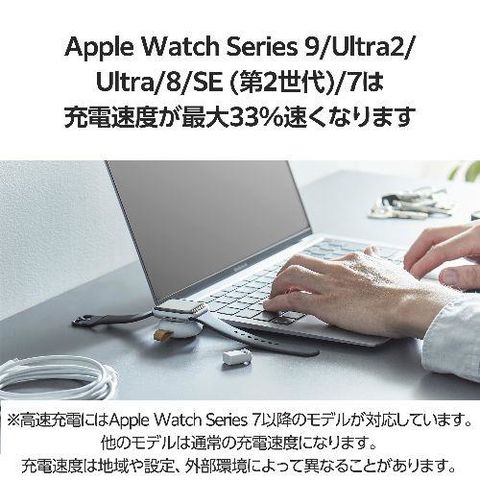 ■Apple Watch Series 9/Ultra2/Ultra/8/SE(第2世代)/7で充電すると、充電速度が最大33%速くなります。