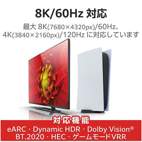 対応解像度:最大8K(7680×4320px)/60Hz、4K(3840×2160px)/120Hz