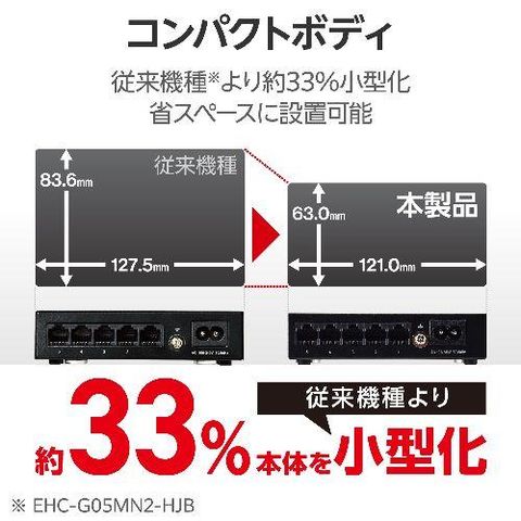 ■Giga(1000BASE-T)対応、電源内蔵のメタル筐体5ポートスイッチングハブです