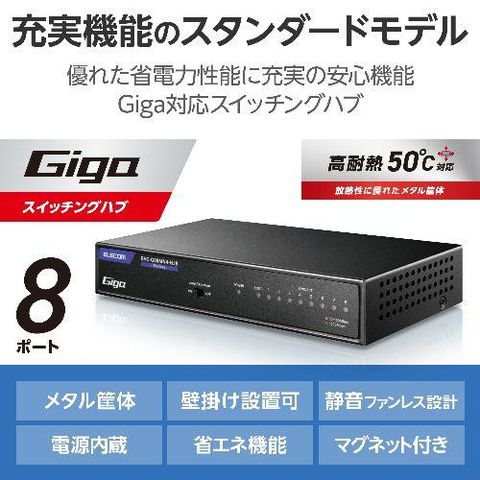 ■Giga(1000BASE-T)対応、電源内蔵のメタル筐体8ポートスイッチングハブです