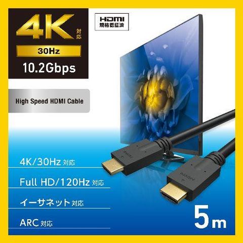 エレコム(ELECOM) CAC-HD14E50BK3 ブラック HDMIケーブル ハイスピード 5m 4K 30Hz ARC テレビ パソコン ゲーム機対応 High Speed HDMI Cable
