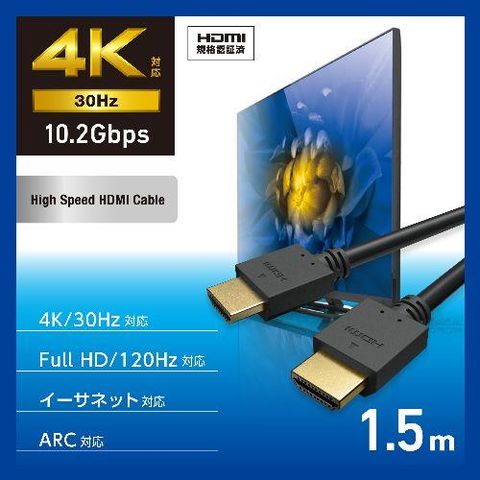 ■最大4K/30Hzの解像度に対応した、認証済みのイーサネット対応ハイスピードHDMI(R)ケーブルです