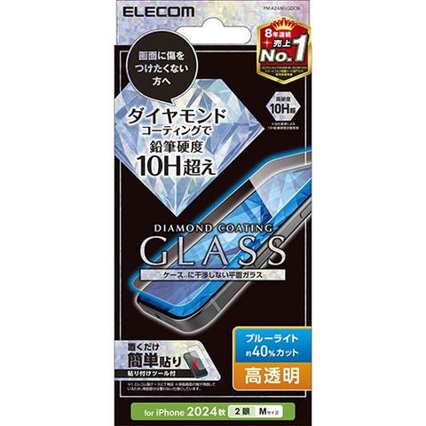 エレコム(ELECOM) PM-A24AFLGDCBL iPhone16用ガラスフィルム 高透明ライトカット 指紋防止 飛散防止 気泡防止