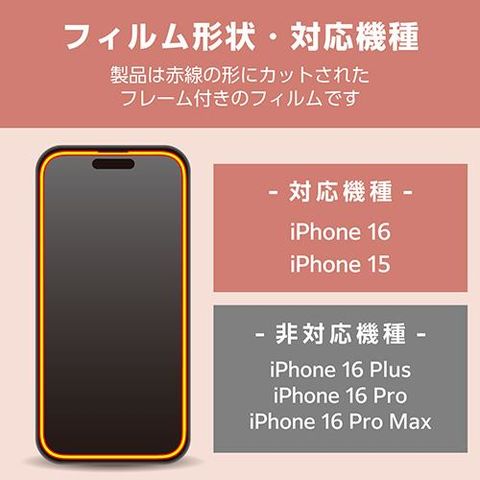 ■ガラスフィルムを衝撃から守るPET素材のフレームが付いており、四つ角が割れない安心設計です。
