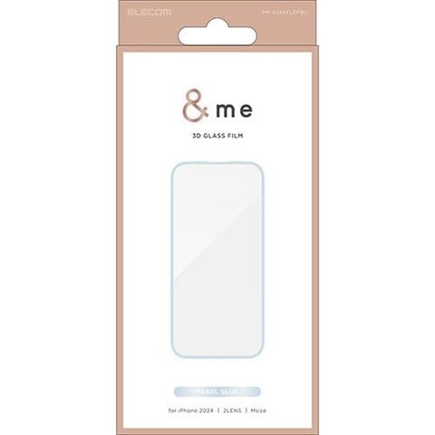 エレコム(ELECOM) PM-A24AFLGFBU パールブルー iPhone16用ガラスフィルム 高透明 全面保護 指紋/飛散/気泡防止