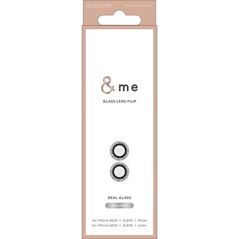 エレコム(ELECOM) PM-A24AFLLGRSV シルバー iPhone16/Plus用カメラフィルム ガラス ラインストーン 高透明 指紋防止