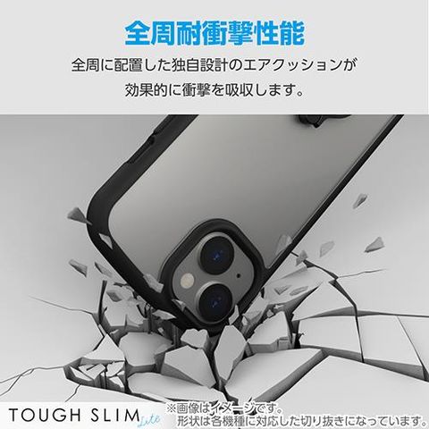 ■全周に配置した独自設計のエアークッションが衝撃を吸収し、背面には高硬度のポリカーボネートを採用した、TOUGH SLIM LITEケースです。