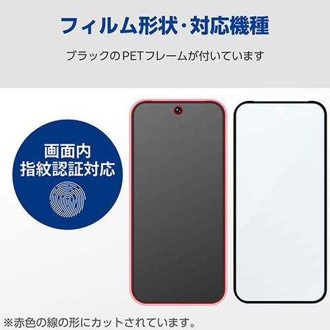 ■ガラスフィルムを衝撃から守るPET素材のフレームが付いており、四つ角が割れない安心設計です。