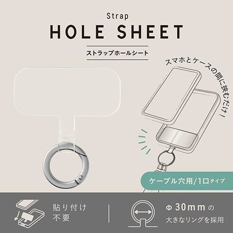 ■スマートフォンとケースの間に挟むだけでストラップホールを追加できる、1口タイプのストラップホールシートです。