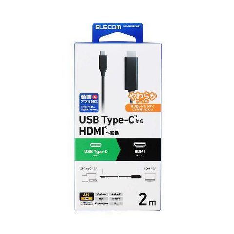 エレコム(ELECOM) MPA-CHDMIY20BK2 ブラック USB Type-C TM - HDMI R 変換ケーブル やわらかタイプ 2m