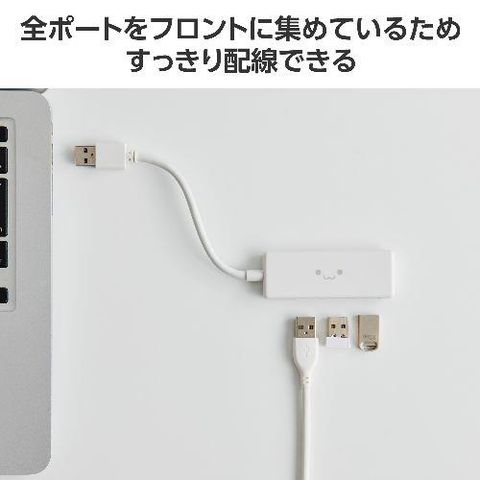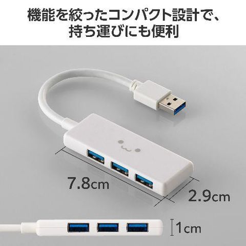 エレコム(ELECOM) U3H-H030WF しろちゃん ホワイト×ブラック USB ハブ USB3.2 Gen1 USB-A×3 バスパワー コンパクト 薄型 ケーブル長10cm