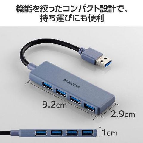エレコム(ELECOM) U3H-H040NV ネイビー USBハブ USB3.2 Gen1 USB-A×4 バスパワー コンパクト 薄型 ケーブル長10cm