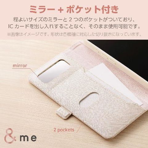 ■目元や口元をチェックするのに便利なコンパクトミラーと、落下防止用のフィンガーストラップが付属した、手帳型ソフトレザーケースです。