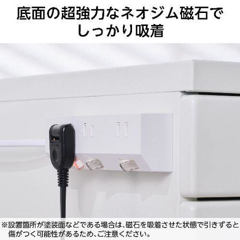 エレコム(ELECOM) T-IS01M-2320WH ホワイト 電源タップ 延長コード 2m コンセント 3個口 ほこりシャッター 極性対応 個別スイッチ マグネット