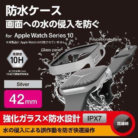 エレコム(ELECOM) AW-24BFCGESV シルバー アップルウォッチ カバー Series 10 42mm フルカバー 表面硬度10H 全面保護 防水 IPX7 2重構造